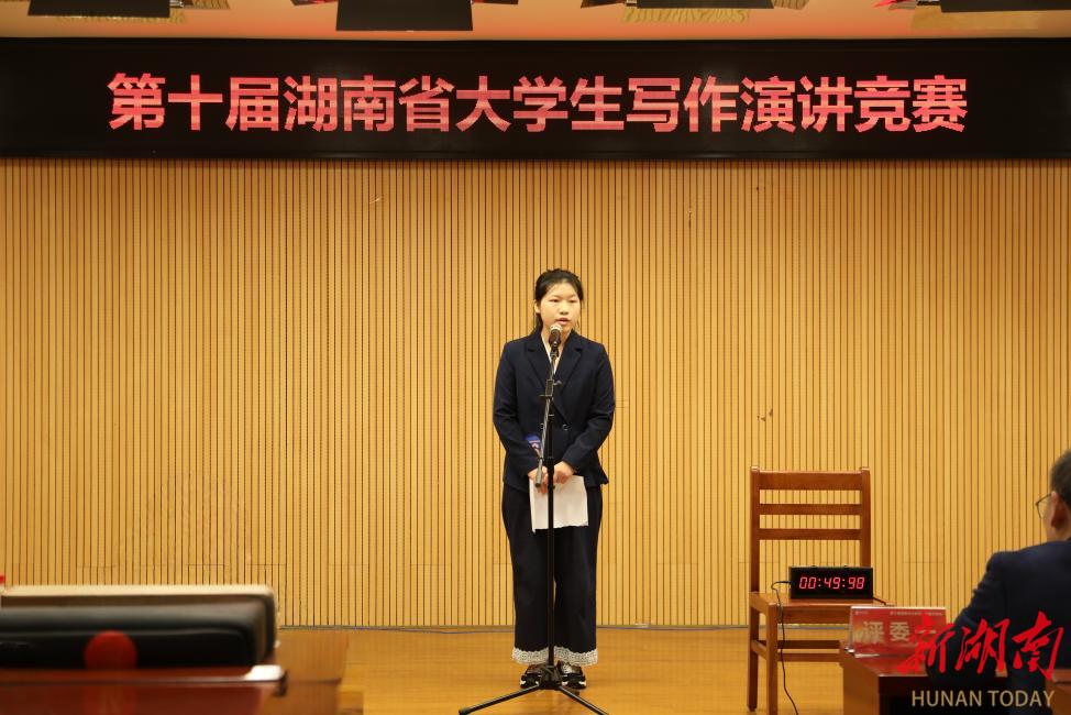 湖南省大学生写作演讲竞赛以弘扬中华优秀语言文化、强化专业实践能力为宗旨,注重培养学生的逻辑思维与人文素养。竞赛不仅有力提升了汉语言文学相关专业的人才培养质量,也为全省高校师生搭建了良好的交流平台。(文 张绍时 彭欣蕊 图 唐丹妮)