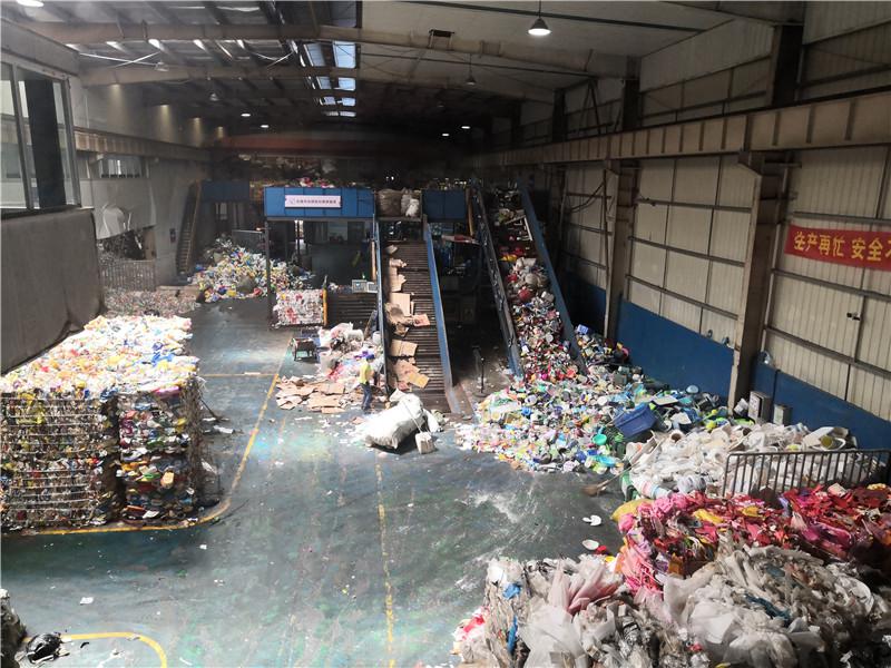 直播过程中,最让线上观众震憾的便是参观蓝岛分拣处理中心了。站在观展台上,可以看见堆积如山的各类垃圾,已经分门别类的摆放在场地的不同区域,场面十分壮观。分好类的塑料垃圾,被"再生资源破碎分选线"进行处理后,运送到下一级工厂进行深度加工,最终实现废弃物资源循环利用。此时,直播间的观众被庞大的垃圾分类山和日处理垃圾量所震撼,也对垃圾进行分类后能"变废为宝"表示欣喜。大家在评论区纷纷喊出"垃圾分类,从我做起"、"绿水青山,就是金山银山"的口号。一时间直播间评论与弹幕再次刷屏。