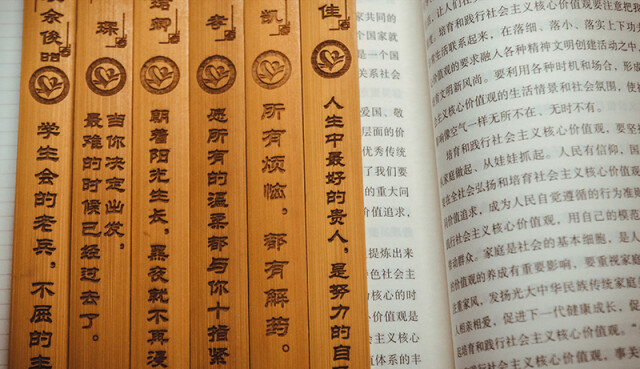 竹简如何讲“话德”有诚意?考研将至,12月22日,长沙学院计算机工程与应用数学学院别出心裁的为每一位考研学子制作了独一无二的锦鲤竹简,辅导员根据每一位考研同学的兴趣爱好、现实表现、性格特点等因素冥思苦想了一句激励的话语,并将其刻于之上,院长书记亲自为全院178名考研学生送上考研大礼包,其中包含了刻有名字和鸡汤的锦鲤竹简和一份精美的考试用文具套装。