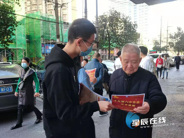 长沙学院学子走上街头宣讲十九届六中全会精神