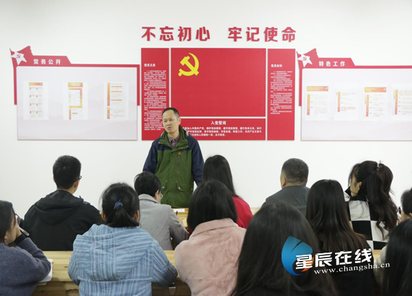 长沙学院经济与管理学院党总支书记钟继军在汇泽3栋公寓学生党员活动室给学生支部书记和学生党员深入浅出讲解十九届六中全会精神