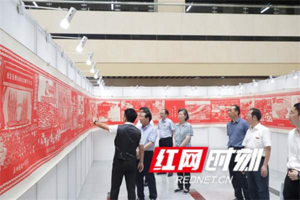 杨泰波一行先后参观了长沙学院四立书屋、百年党史百米剪纸长卷展览,现场听取了长沙学院党委书记杨小云,党委副书记、校关工委主任汤文胜,校关工委常务副主任杨兴龙对学校关工委工作的汇报。观看了由长沙学院关工委创排、以第一的成绩获得2021年教育部关工委最佳舞台剧《唱支山歌给党听》。