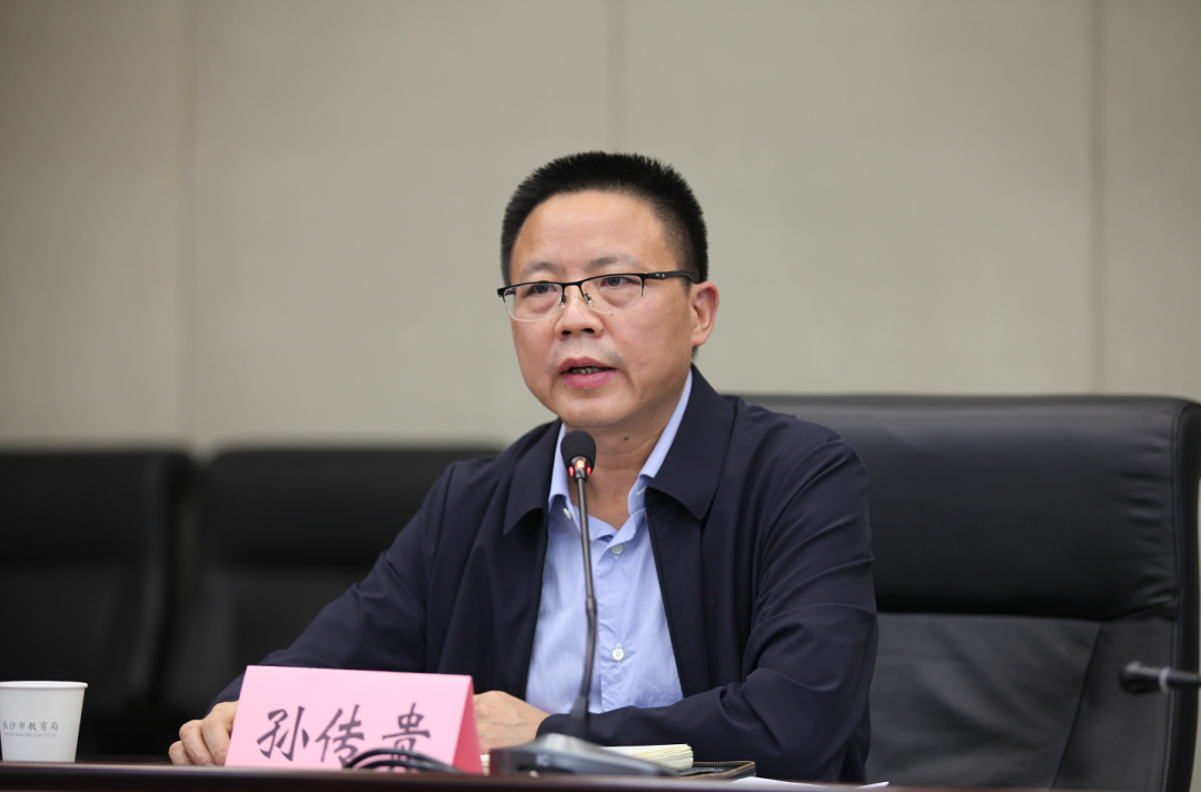 市教育局党委书记、局长孙传贵在会上宣讲党的二十大精神,传达学习桂英书记在长沙学院宣讲时的讲话精神