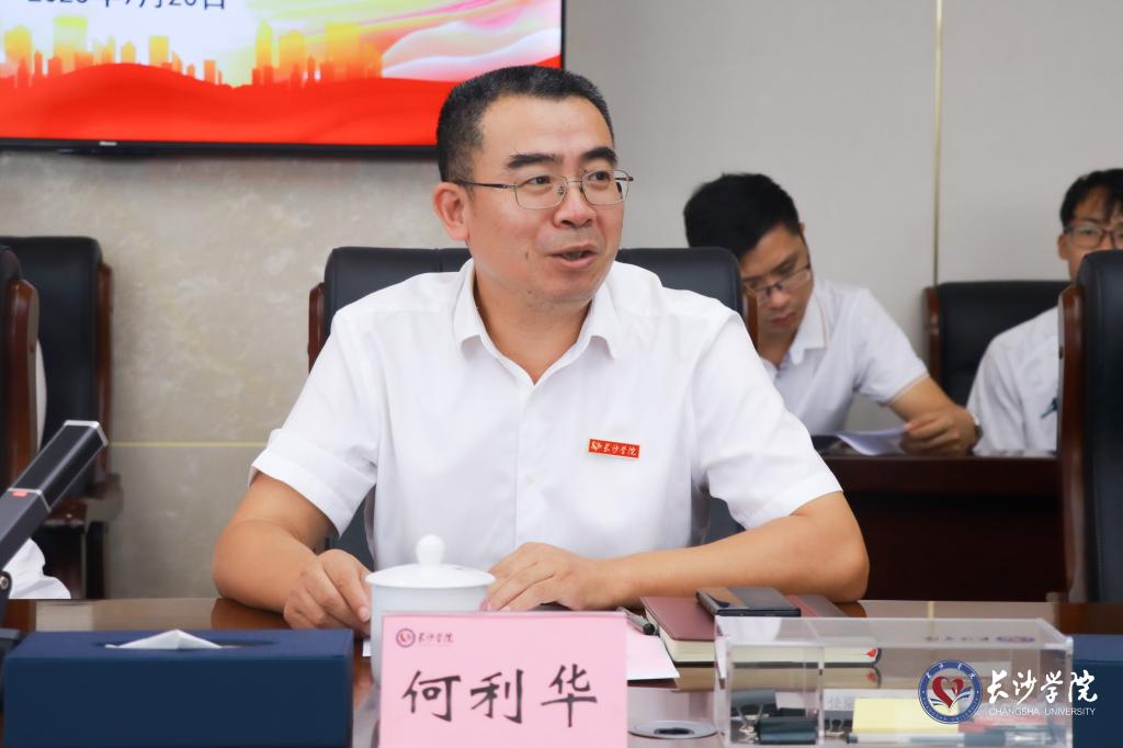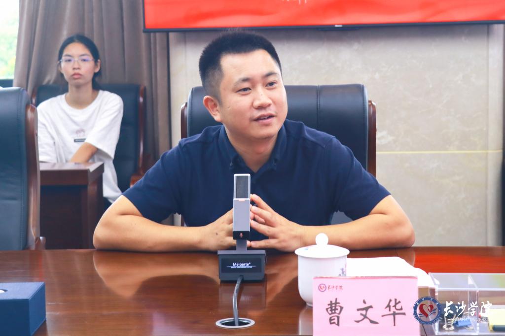 何利华代表学校向支持长沙学院事业发展的曹文华校友及其家属表示诚挚的感谢。他表示,曹文华校友在个人事业发展的同时,回馈母校、回馈社会,支持学校队伍建设和人才培养工作,是一份弥足珍贵的使命初心。他期待,未来学校能与优秀校友企业建立更紧密的关系,充分发挥优势,加强各方面的合作,积极为社会培养更多的杰出人才。