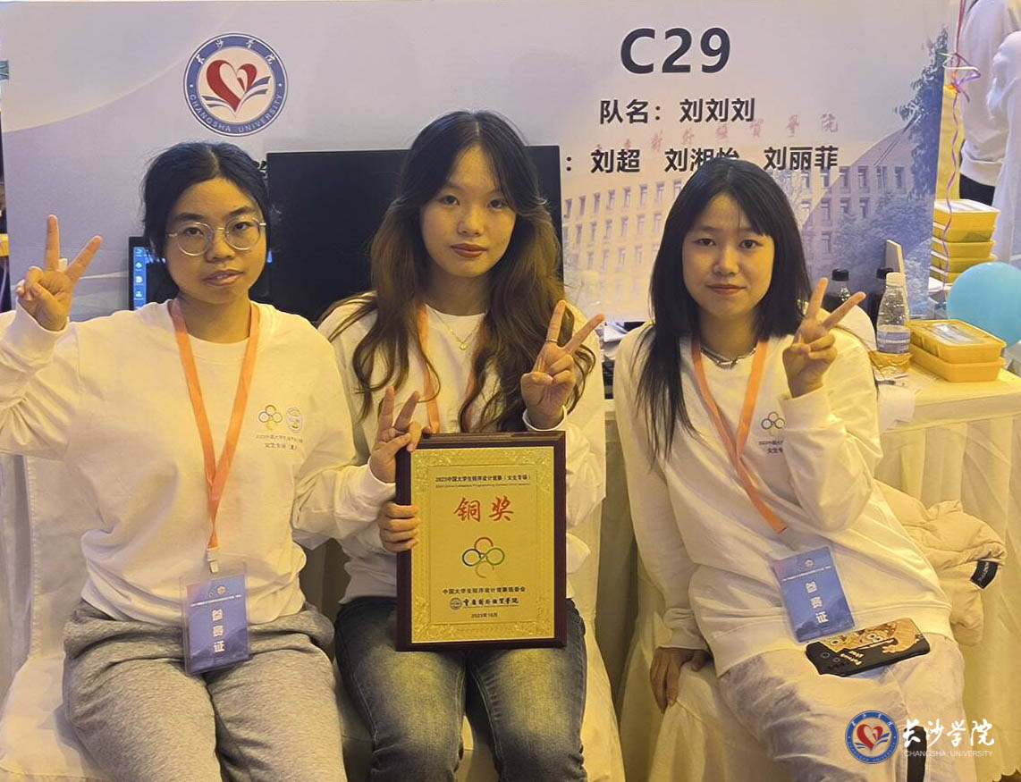 10月20日至21日,在重庆对外经贸学院举行的2023年中国大学生程序设计竞赛女生专场比赛中,我校计算机科学与工程学院黄娟老师带领的计算机科学与技术专业21级3位女生刘超、刘湘怡、刘丽菲经过5个小时的激烈角逐,获得铜奖。