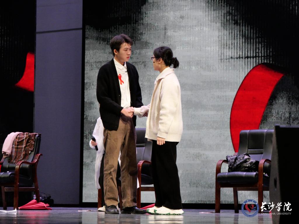 活动现场,长沙市疾控中心带来了情景剧表演《爱与艾的选择》,该剧旨在倡导社会对艾滋病患者要多一分关怀、少一分歧视,艾滋病患者的世界同样可以是红色的地平线、葱郁的森林、霓虹灯与繁星;艾滋病患者同样值得拥有爱,同样会去传递爱。