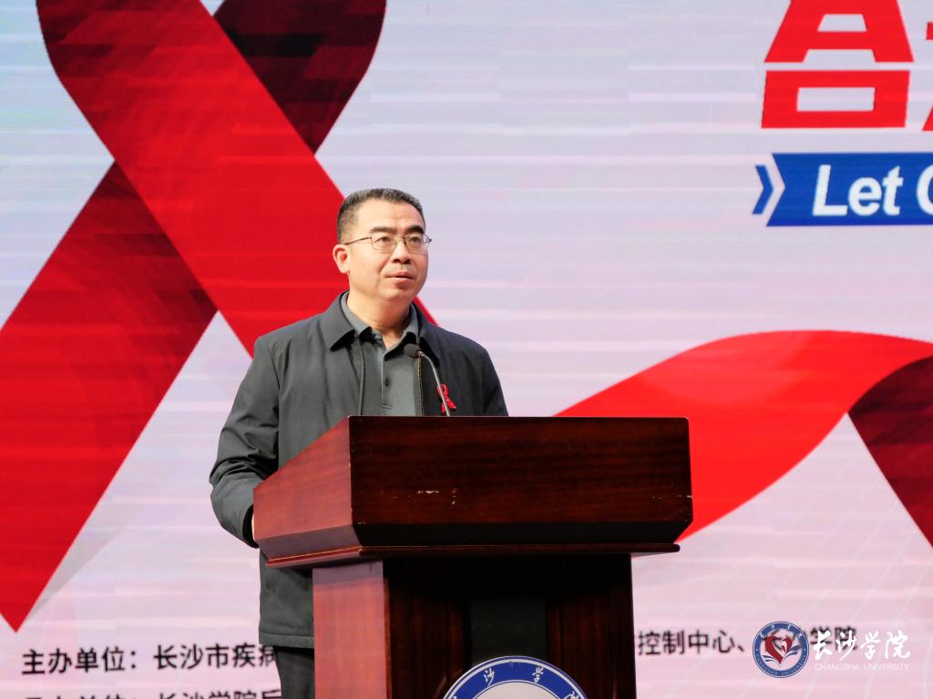 凝聚师生力量,合力共抗艾滋。在第36个“世界艾滋病日”即将到来之际,11月28日下午,我校2023“世界艾滋病日”主题宣传活动在学生活动中心举行。本次活动由我校与长沙市疾病预防控制中心、开福区疾病预防控制中心共同主办。党委委员、副校长何利华出席活动并讲话,长沙市疾控中心性病与艾滋病防制科副科长谢知为现场600余名师生进行了《青春有爱,健康无艾》防“艾”科普宣讲。