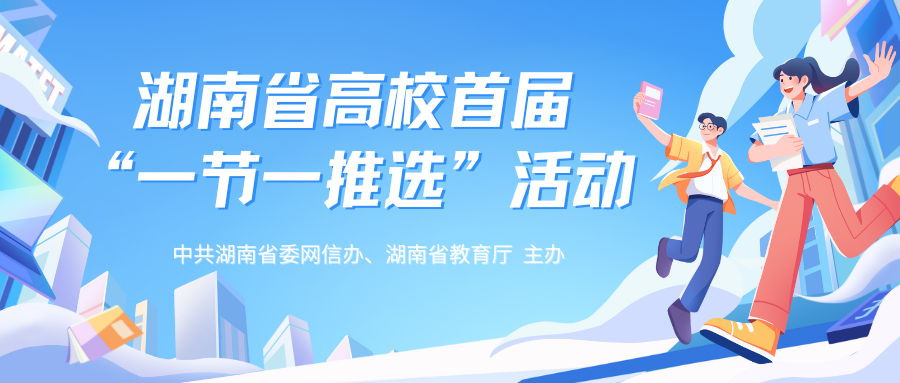 近日,中共湖南省委网信办、湖南省教育厅联合发文,公布了湖南省首届高校“一节一推选”活动入选名单,我校师生作品共获得了一等奖3项、二等奖3项、三等奖3项。
