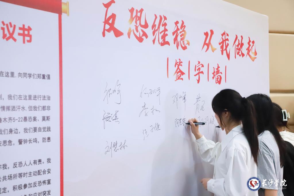 活动现场,检察人员和我校师生代表还共同在“反恐维稳 从我做起”的反恐倡议签名墙上庄严地签上自己的名字,表达了人人参与反恐斗争、坚决抵制恐怖主义的决心。