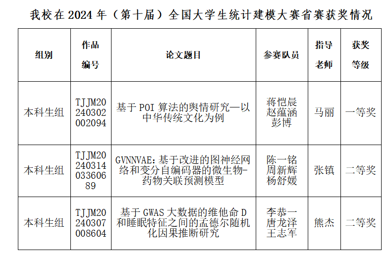 近日,由中国统计教育学会主办的2024年(第十届)全国大学生统计建模大赛湖南赛区选拔赛圆满落幕。我校学子首次组队参赛,荣获本科生组一等奖1项、二等奖2项。其中,计算机科学与工程学院的蒋恺晨、赵蕴涵、彭博在马丽老师的指导下,以中华传统文化为切入点收集数据,借助人工智能模型进行舆情分析,撰写论文荣获湖南赛区一等奖。