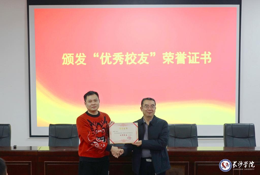 (党委委员、副校长何利华为杨超云颁发“优秀校友”荣誉证书)