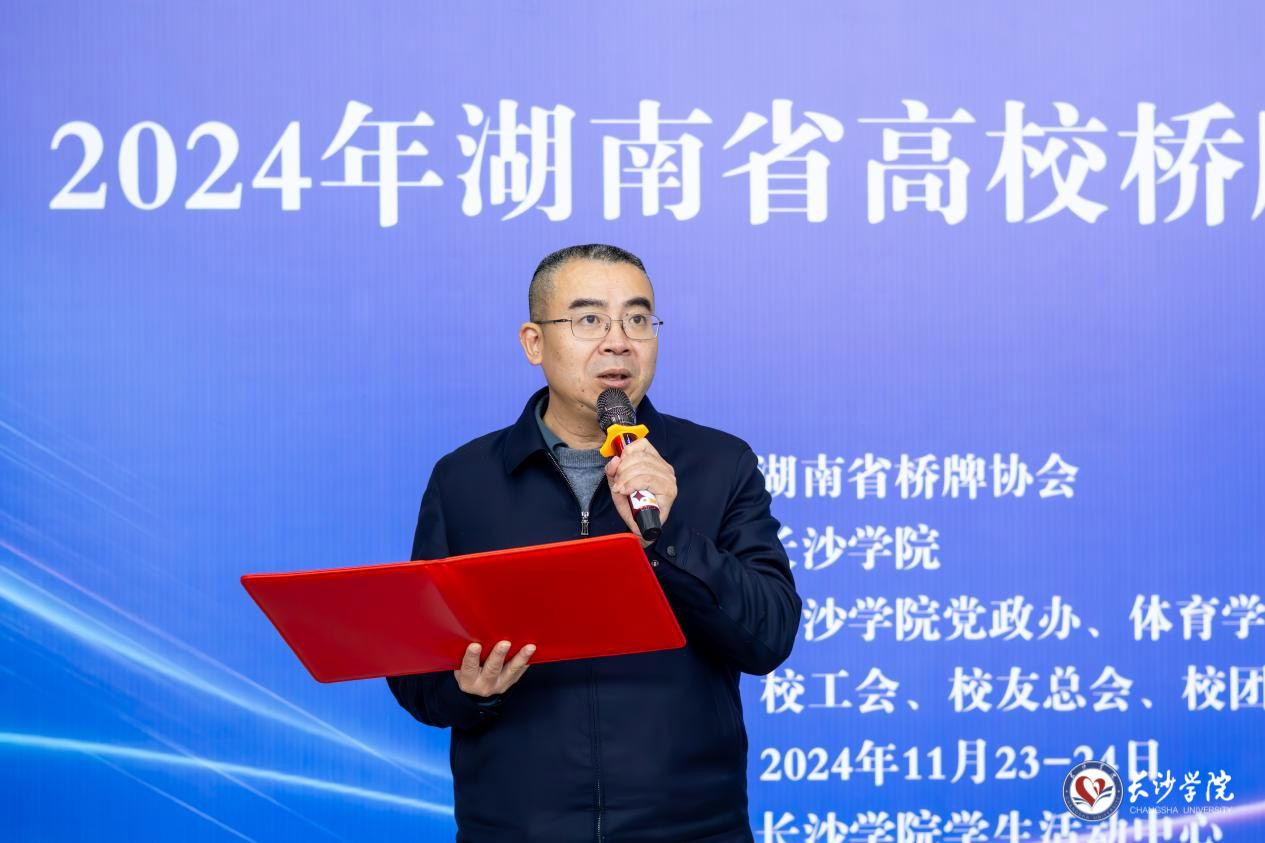 何利华对来自省内各大高校的参赛选手表示欢迎,并简要介绍了我校发展情况。他表示,桥牌是一项讲究交流、注重协作的益智游戏,也是一项竞技性很强的体育运动,他希望以此次活动为契机,进一步推广桥牌运动,在比赛中赓续各兄弟院校间的友谊。