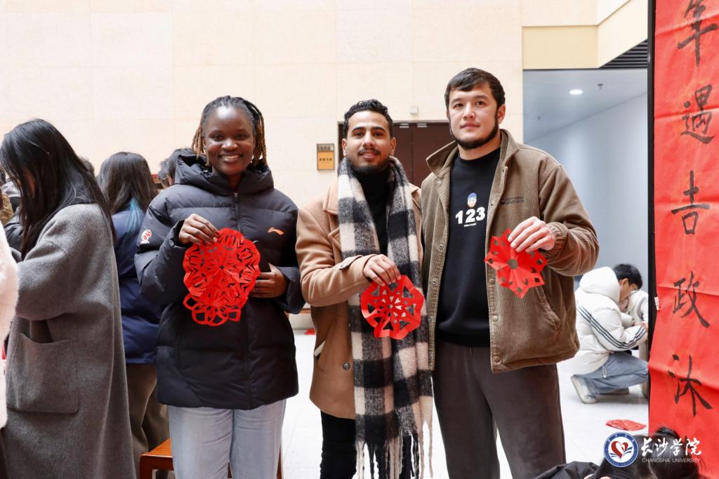 龙狮协会两支灵动的祥狮在激昂的鼓乐声中用灵动矫健的身姿,舞出新春的欢腾与活力,也为活动拉开了序幕。省内书画名家王元建、陈炼、柳玉、张建龙四位教授及黄慧瑾、朱洁华、卿旭峰等老师受邀前来,现场挥毫泼墨,用春联和画扇把美好的祝福送给现场师生。活动当天还吸引了多位留学生参与,近五百位师生现场品味煮茶雅趣,体验书画墨蕴,镌刻剪纸意趣,参与投壶竞技,展示汉服之美,共同感受着浓浓的“中国味”。