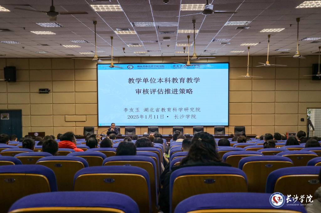 1月11日,学校在致远楼学术报告厅召开教育教学业务培训会议,特邀湖南大学杨旭静教授、刘强教授,湖北省教育科学研究院(湖北省教育评估院)李友玉研究员等专家,围绕OBE成果导向教育理念、智慧课程建设以及审核评估等主题,为一线教育管理人员进行集中授课。二级学院院长、教学副院长、基层教学组织负责人、优秀实习基地负责人等200余人参加培训。培训由党委委员、副校长张世英主持。