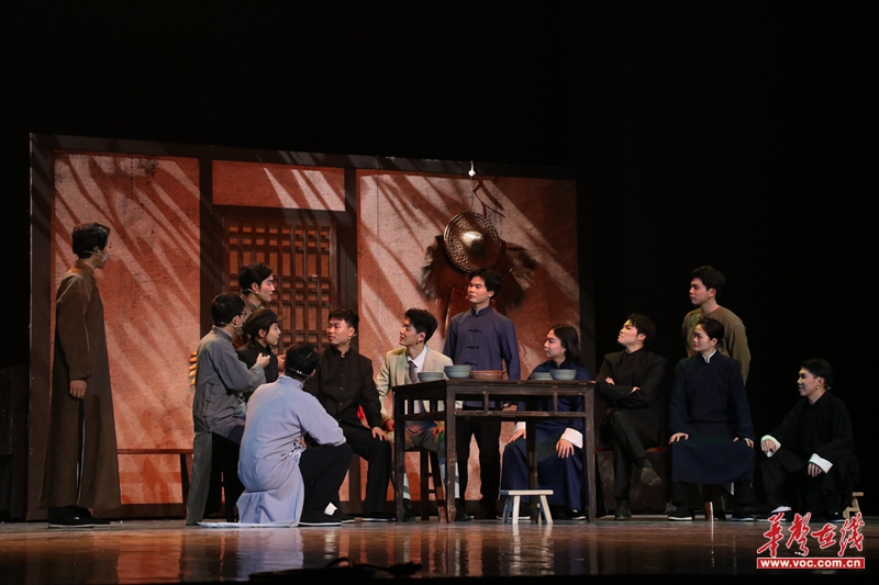 5月6日,由长沙学院青年师生打造的大型原创红色话剧《日出湘江》专场演出在该校学生活动中心大礼堂举行。