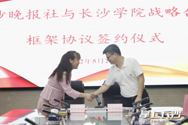 长沙学院党委副书记汤文胜表示,长沙晚报社在全国省会城市党报中影响力名列前茅,所承办的“学习强国”长沙学习平台更是具有国际传播优势的优质平台。此次双方签订共建协议,是新形势下不断深化校企合作、产教融合及协同育人的一次有益尝试。此次共建合作将以奋进姿态在实施“强省会”战略中大力作为,为长沙高质量发展谋取更为稳定友好的国际舆论环境。