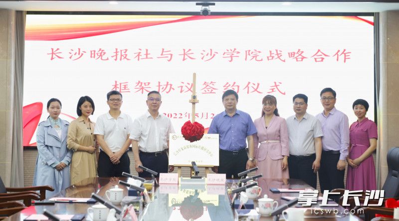 5月26日,长沙学院与长沙晚报社(集团公司)举行共建实践教学基地与研究中心仪式。张卓君摄