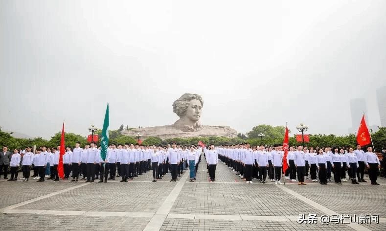 在橘子洲,来自中南大学、湖南大学、湖南师范大学、中南林业科技大学、湖南工商大学等5所高校的1000名大学生新党员,高唱入党誓词歌曲《我宣誓》,整齐步入宣誓地点。湖南省委教育工委副书记、省教育厅党组成员王建华带领青年大学生进行宣誓,并勉励广大大学生党员坚守入党承诺,传承红色基因,努力成为堪当民族重任的时代新人。