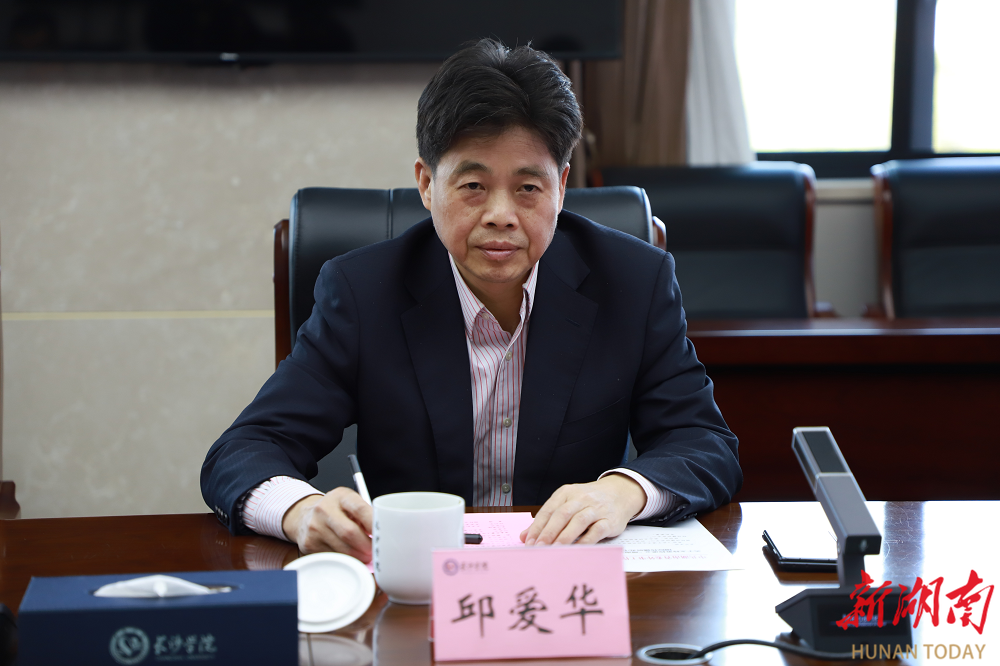 刘寒波对邱爱华一行的到来表示热烈欢迎,并简要介绍了长沙学院基本情况和办学成果。