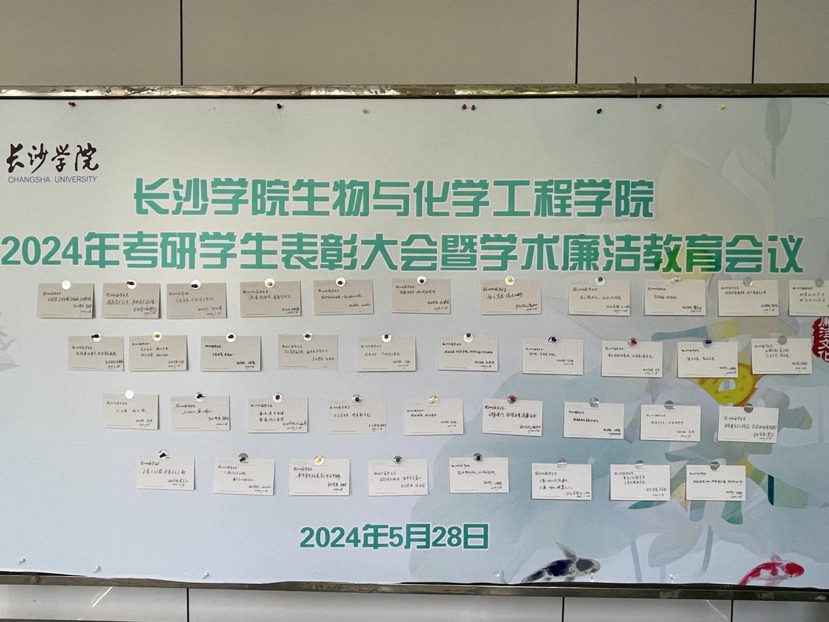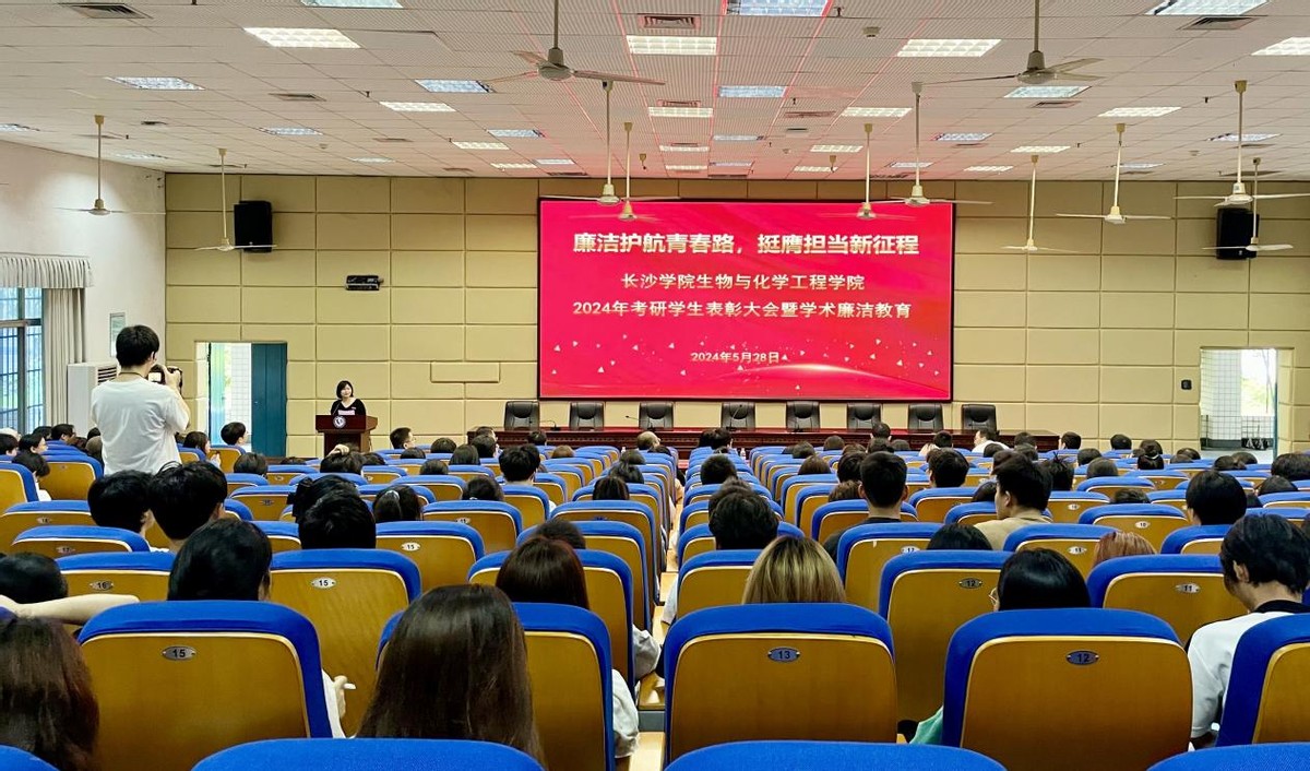 “这是一堂生动又深刻的学术清廉教育课。作为一名考研‘上岸’的毕业生,学院赠予我的‘廉洁’之笔和‘诚信’寄语将伴我踏上新的学术征程,我将脚踏实地走好学术路上的每一步。”长沙学院2020级生物工程专业毕业生胡誉在参加完学院学术清廉教育大会后如是说。5月28日,长沙学院生物与化学工程学院举办学术清廉教育活动,为2020级考研拟录取的70余名同学提前上了一堂生动的学术廉洁课。