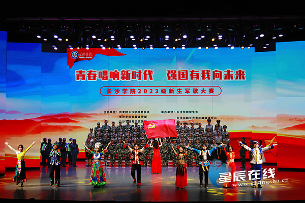 星辰在线9月26日讯(通讯员 梁莉 陈婧琳 孙雨珊)“我以青春向祖国告白,行囊装满期待,滚烫的心流淌着红色血脉!”9月22日晚,长沙学院第十二届新生军歌大赛举行,四千余名青年学子青春开唱,蓬勃朝气直击长空。