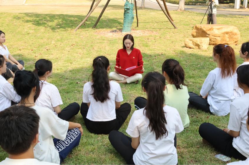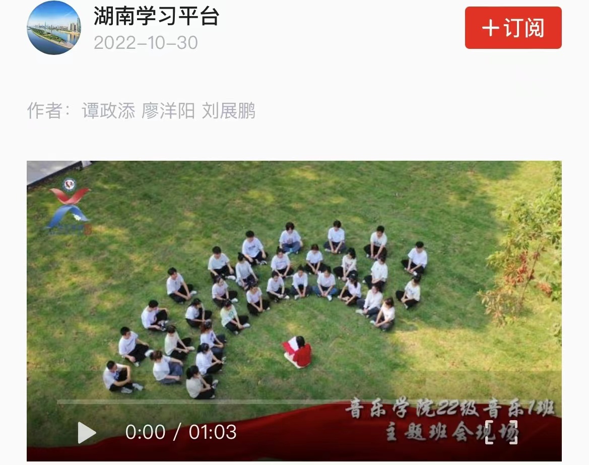 22级音乐1班在音乐学院党总支副书记傅诗贻的带领下学习党的二十大精神。