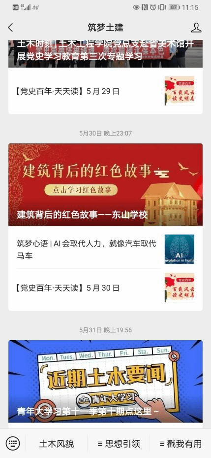 据了解,这是该学院开展党史学习教育的一项创新举措。为了鼓励青年教师将能力提升和业务工作相融合,把党史学习教育更好地融入教育教学,学院在官方微信公众号“筑梦土建”上打造了“青年教师讲党史”思政微课堂专栏。专栏设置6期,专人维护,定期推送。“我主讲的题目是《找到一条救国救民的道路——蔡和森的故事》,第一次以这种‘理论教学+录制微课+体验教学’相结合的方式来讲思政课,不仅提升了我们青年教师的教学能力,拓宽了思政教育的思路,还让党史学习教育形式更具吸引力、感染力、影响力。”亲身参与微党课讲述的青年教师赵志军感慨道。
