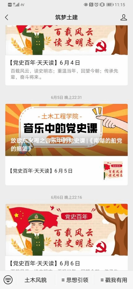 除了“青年教师讲党史”思政微课堂之外,该学院每天在入党积极分子QQ群发布“每日一习话”;官微每天推送“党史百年·天天读”、定期推送“放歌东来阁之音乐中的党史课”;开展“建筑背后的红色故事”微宣讲活动等,使全体师生在潜移默化中接受党史教育。