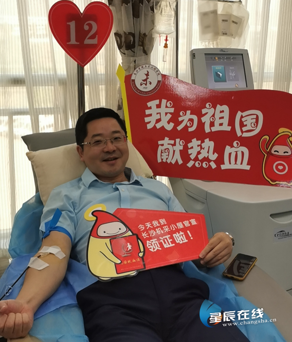 长沙学院土木工程学院党总支书记徐远超带头献血,通讯员供图