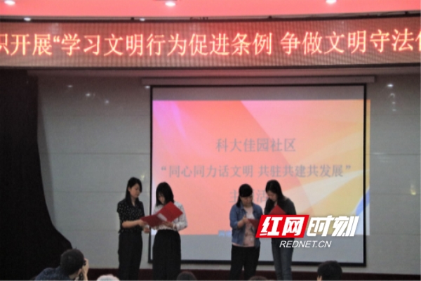 最后,全国道德模范任菲莉携手20名志愿者共同登台,以“学习文明行为促进条例 争做文明守法佳园人”为主题,共同宣读《居民文明行为倡议书》。代表们共同宣誓倡议,从自身做起,传播并践行好《长沙市文明行为促进条例》。