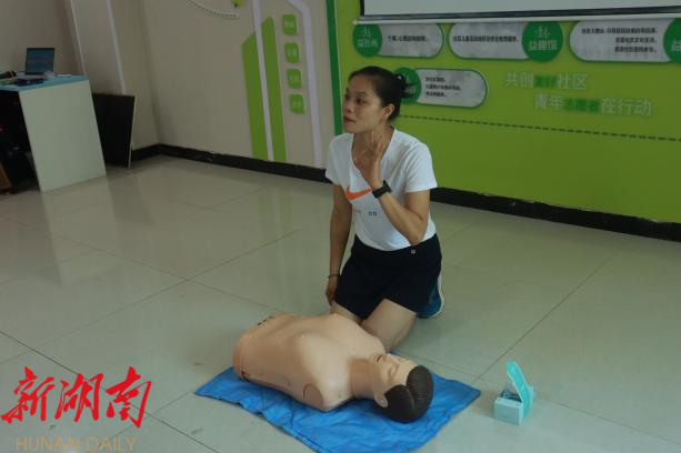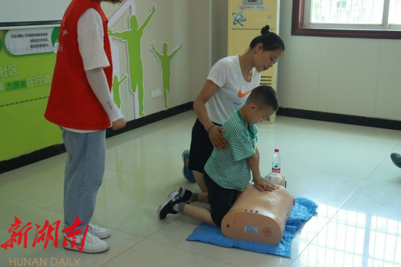 课堂分为“理论+实操”两个部分。首先,实践团的小老师分别讲述了防溺水的原因及措施、溺水后的施救方法和哪些地方容易发生溺水事故,告诫小朋友们牢记“防溺水六不准”原则。接着,长沙学院体育学院冯灿老师给同学们现场演示了如何对溺水人员进行正确的心肺复苏,并指导小朋友们上台进行实操练习。