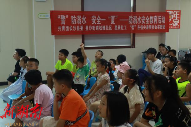 炎炎夏日,与“水”则凉。人们在感受凉爽的同时也要格外关注,暑假是中小学生溺水事故的高发期,为此,“智”在指尖暑期社会实践团在共青团长沙县委的带领下,联合星辰社工面向社区小朋友,于7月11日在松雅社区开展防溺水安全教育小课堂。