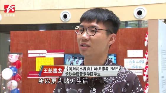 歌曲词曲作者以及RAP演唱者王彭嘉龙是长沙学院音乐学院大三的学生,他从小就与浏阳河结下了不解之缘,写《浏阳河水流淌》的词曲时更是融入了自身情感,用歌曲表白母亲河。
