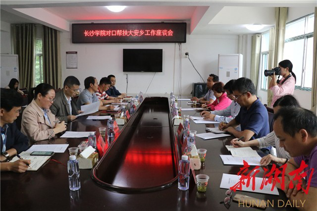 在大安乡召开的对口帮扶工作座谈会上,陈忠耀对长沙学院对口帮扶工作取得的成绩表示充分肯定和衷心感谢。刘沛林表示,长沙学院将一以贯之全力支持对口帮扶项目建设工作,确保思想不松、投入不少、力度不减,助力大安乡如期脱贫。