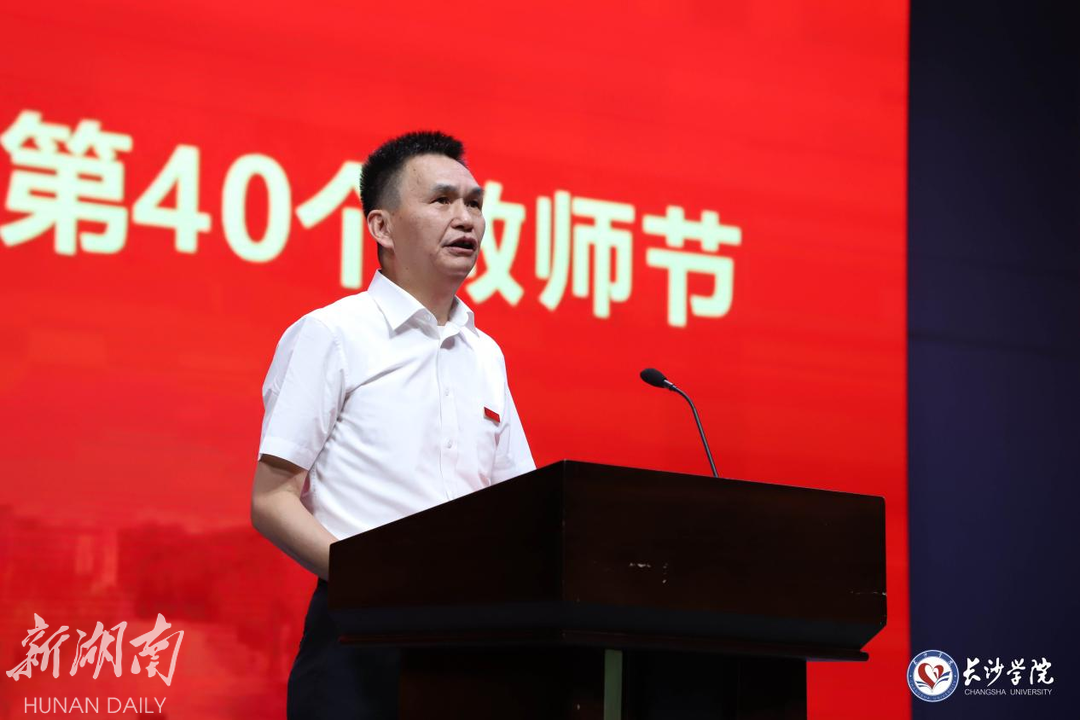 9月10日下午,长沙学院在学生活动中心举行庆祝第40个教师节大会。大会以“大力弘扬教育家精神,加快建设教育强国”为主题,向学校全体教师致以节日的祝福和崇高的敬意。长沙学院党委书记杨小云出席大会并讲话,党委副书记刘寒波主持大会。