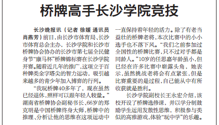 《桥牌高手齐聚长沙学院竞技 锦标赛吸引众多“学生军”》