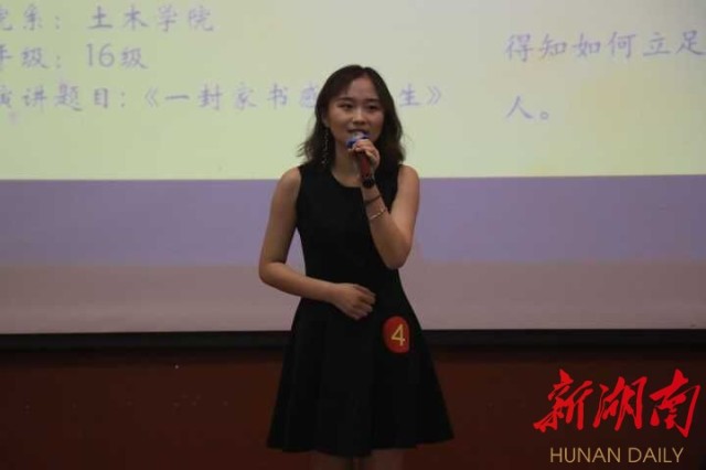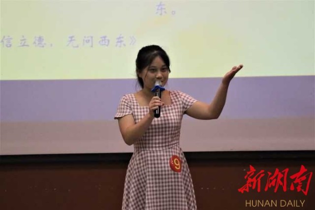 比赛现场,选手们以“立德修身、诚信为本”为主题,或从身边小事入手、或结合自身经历、或借鉴古今中外诚信故事抒发自己的见解。机电工程学院甄诚不断思考着自己名字的意义,于是他创办了学校的第一个失物招领平台,和一群有爱心的同学寻回2788张校园卡,和身份证手机钱包若干;土木工程学院戚钰颖从《傅雷家书》获取灵感,在“诚信家书”活动中收到父亲的回信,感受到父亲通过“高质量袜子”展现出的对行业诚信的坚守;音乐学院陈佩云从长沙学院校训“力学笃行”出发,懂得“获得真才实学要诚信走好每一步,为中华民族的伟大复兴贡献自己的力量。”