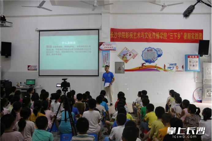 据了解,今年6月,长沙学院影视艺术与文化传播学院结合专业特色组织成立了一支致力于推普建新的三下乡小分队,成员从学院播音主持、汉语言文学、新闻学、广播电视编导等专业中甄选产生。推普建新小分队成员在长沙县开慧镇进行了为期半个月的普通话调研和培训准备工作后开展了本次活动。后期推普建新小分队还将远程教学,为长沙县开慧镇的相关单位提供普通话提升教学服务。