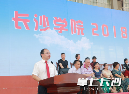 9月3日下午,长沙学院2018年级新生开学典礼在天健体育场举行。全校1000余名老师和新生一起见证了这一盛大仪式。
