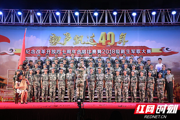 红网时刻9月19日讯(通讯员 傅思远 高慧浈 朱采微 记者 陈宗昊)“启航吧,充满梦想,充满勇气,充满机遇的十八岁!”9月18日晚,长沙学院举行纪念改革开放四十周年合唱比赛暨2018级新生军歌大赛,首批“00”后大学生用铿锵有力的军歌向军人致敬,向改革开放四十年致敬。