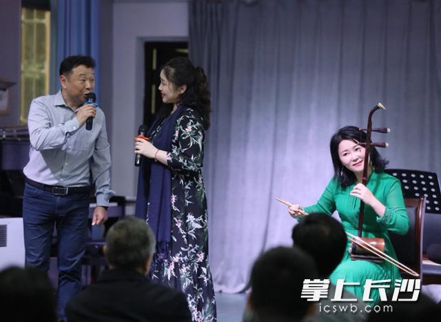 此次讲座,可谓“推陈出新”,国家一级演奏员、湖南艺术职业学院音乐系副主任蔡霞,特别邀请国家一级演奏员、湖南省戏曲音乐协会副会长王勇,中国戏曲表演艺术最高奖“梅花奖”得主叶红加入。在讲座过程中,蔡霞、王勇联袂主讲,针对大筒的艺术特征、演奏技巧等方面进行示范教学。两人配合默契,讲述、哼唱、演奏……讲座形式丰富,无论是“大筒艺术特征”和“大筒演奏法”的归纳解析,还是花鼓戏小调《洗菜心》和《瓜子红》的现场示范,两人都一丝不苟,用心、用脑、用情与听众沟通交流,有效地将大筒艺术的知识普及、兴趣引导与技能传授和谐融为一体。