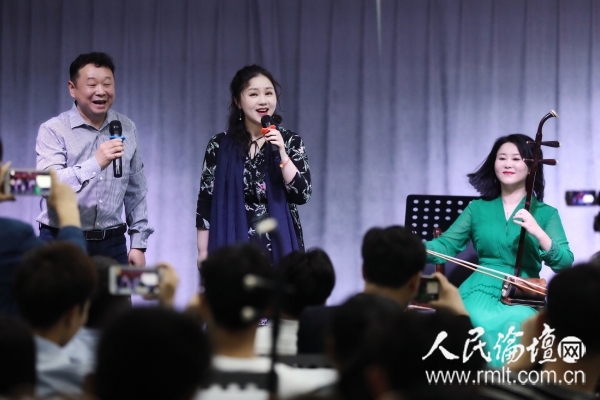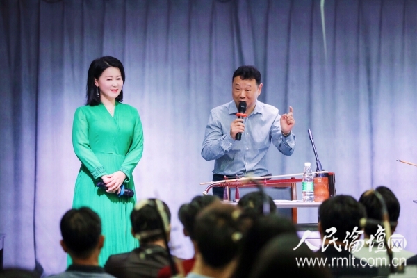 讲座最后,一曲湖南花鼓戏《刘海砍樵》的经典唱段《比古调》惊艳现场。王勇、叶红联袂演唱,蔡霞担任大筒伴奏,将整场讲座推向高潮。