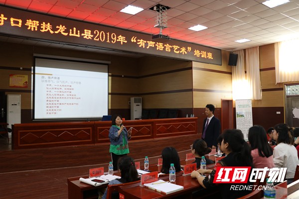这是来自长沙学院的教学团队三天来在龙山开展的第五场有声语言培训讲座。“扶贫先扶智,扶智先通语”。2018年以来,随着《推普脱贫攻坚行动计划(2018—2020年)》发布,我国语言文字工作与国家脱贫攻坚战略实现全面对接,语言脱贫攻坚战正式打响。发挥不同语言在不同场合的作用,使得各种语言能各得其所、各展所长,助力贫困人口实现脱贫,成为当前一段时期扶贫工作的重要内容。龙山县是长沙市对口帮扶单位,龙山县大安乡是长沙学院对口扶贫点。为提高龙山县中小学师生、村干部及村民的有声语言表达能力,湖南省播音主持研究会常务理事、长沙学院影视艺术与文化传播学院副院长、硕士生导师、主任播音员荣斌率教学团队赶赴龙山,先后在县教体局、大安乡、乌鸦九年制学校、惹巴拉景区等地举行讲座,将其所负责的省级精品在线开放课程《广播节目播音主持》送到学员眼前,面对面推广普通话,传播有声语言艺术。