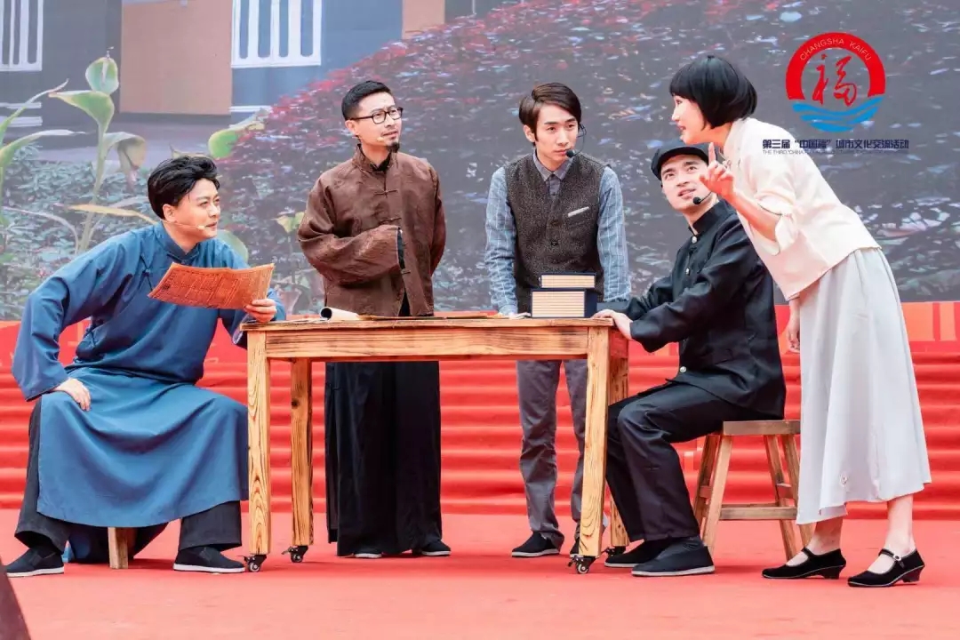 原创情景剧《福地往事》以毛泽东、杨开慧在开福清水塘革命工作生活的场景故事为原型,以情景剧、音乐演绎、视频演绎等形式,讲述伟人在开福的往事,用革命化的爱情,讲述伟大事业的幸福。《花鼓新唱:开福身边好人多》以极具湖南特色花鼓曲艺,以现代演绎的方式,结合情景视频和合理编排,改编讲述开福身边好人的先进事迹,朗朗上口,通俗易懂,让现场嘉宾快速融入情景。曲艺演员身着特色湘绣服装,展现开福区非物质文化遗产湘绣的魅力,定制的福文化主题湘绣,结合文艺舞蹈,在现场凸显开福厚重历史文化底蕴。