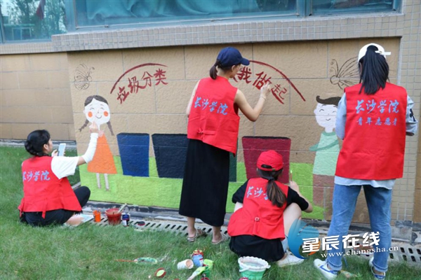 通过前期充分准备和精心策划,志愿者们用手中的画笔和颜料在社区各个角落传递垃圾分类和文明的力量。青春不怕晒,分类不怕苦,长沙大学艺术设计专业的志愿者们顶着太阳,一个个忙得满头大汗。经过数小时的创作,以“垃圾分类”、“低碳环保”、“绿色生活”等各类主题画在墙面上一一呈现,原本单调的墙面摇身一变成为宣传垃圾分类的好阵地,吸引着过往居民驻足观看。