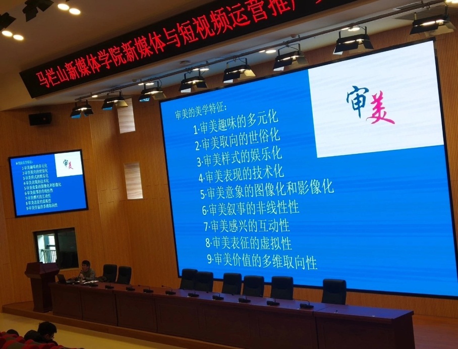 长沙学院影视艺术与文化传播学院黄柏青院长,则从艺术的角度出发,分享了新媒体时代下应具备的短视频美学。从短视频的趣味多元化、样式娱乐化、表现技术化、感性互动化、表征虚拟化及意象图像化影像化等多个方向,结合热门案例,详细讲解了当下短视频审美的美学特征。