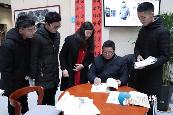 (周漾澜先生为同学们签名。本文图片均由通讯员 蔡婷婷 粟慧萍 摄)