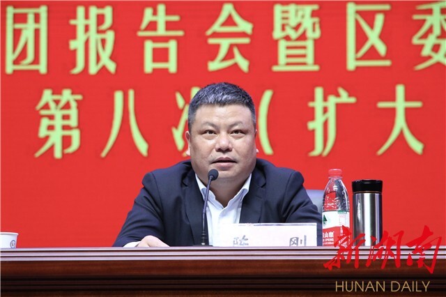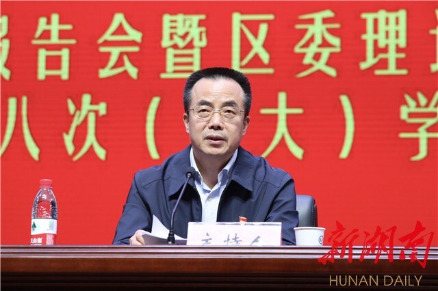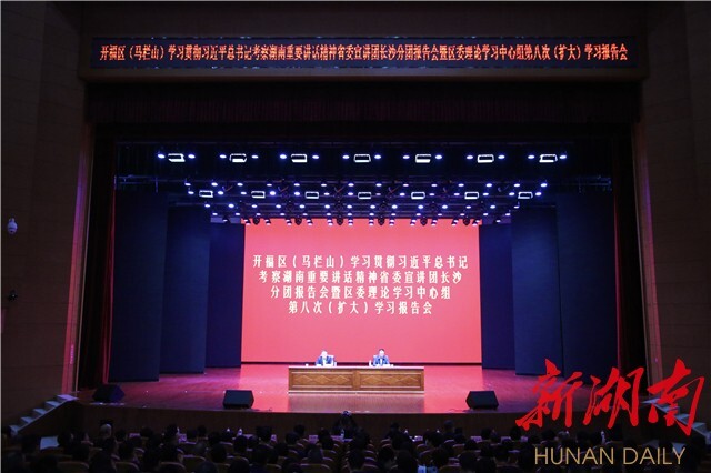 湖南日报·新湖南客户端10月27日讯(记者 彭永礼)为深入学习贯彻习近平总书记考察湖南重要讲话精神,进一步推动讲话精神往实里走、往深里走、往心里走,10月26日下午,学习贯彻习近平总书记考察湖南重要讲话精神省委宣讲团长沙分团报告会暨开福区委理论学习中心组第八次(扩大)学习报告会在长沙学院举行。长沙市委常委、宣传部部长陈刚从12个方面对习近平总书记考察湖南重要讲话精神作了深度解读。开福区委书记曹再兴主持报告会。开福区四大家领导班子成员以及区直部门负责人,长沙学院、马栏山视频文创产业园等校、企人员共740余人现场聆听报告。