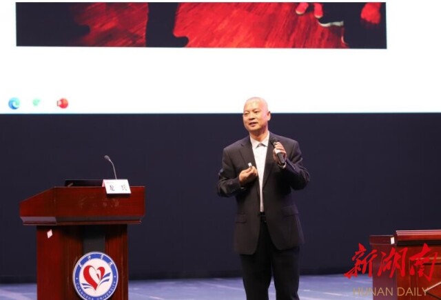 湖南日报·新湖南客户端3月31日讯(通讯员 朱珊)“思想政治理论课要坚持理论性和实践性相统一……”“把学生带到田间地头,让农民伯伯向他们讲述这些年祖国大地的深刻变化……”3月26日,一场生动的主题报告拉开了长沙学院“三全育人”综合改革试点工作推进会的序幕。台上,来自湖南大学马克思主义学院的龙兵教授正在分享自己如何打造“移动”思政课堂的经验和思考。台下,长沙学院数百名师生认真聆听,不时报以热烈的掌声。