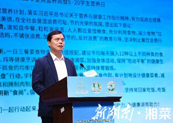 许尚锋现场梳理了近年来省卫生健康委高度重视并积极推进过的营养健康工作,如推动出台了《湖南省国民营养计划2030实施方案》和《健康湖南行动实施意见》,启动了健康食堂(餐厅)和营养健康示范学校试点建设等。他呼吁社会各界共同践行“三减三健”、戒烟限酒等健康生活方式,共同做到合理膳食、增强免疫力,打好身体健康的基础;共同关心儿童青少年营养,守护民族健康的未来;共同做到文明就餐、减少浪费,树立健康饮食新风尚。